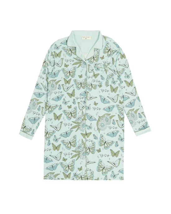 PJ shirt dress featuring butterfly, star and flower design and “Taylor Swift” all over print.