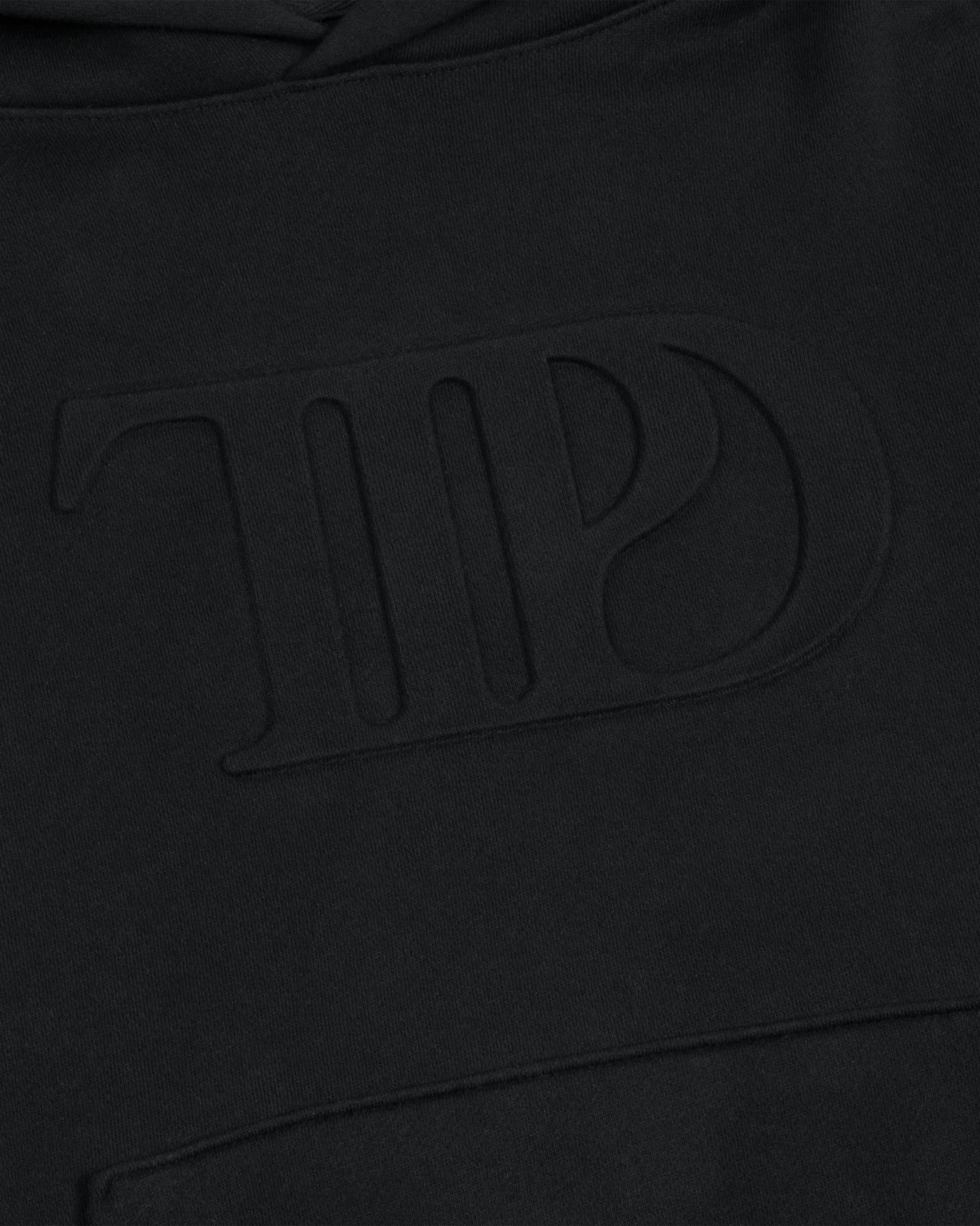 Black hoodie with front pocket featuring embossed “TTPD” album logo on front.